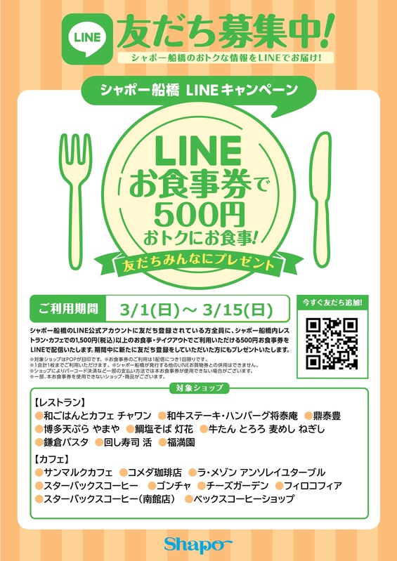 シャポー船橋の公式LINEのお友達になっていただいている方を対象に
