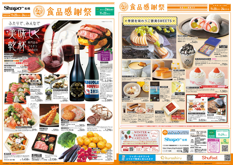 シャポー船橋では11月20日(木)~24日(月・休)まで食品感謝祭を開催いたします!