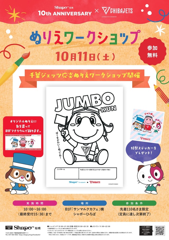 千葉ジェッツ応炎ぬりえワークショップを開催します!