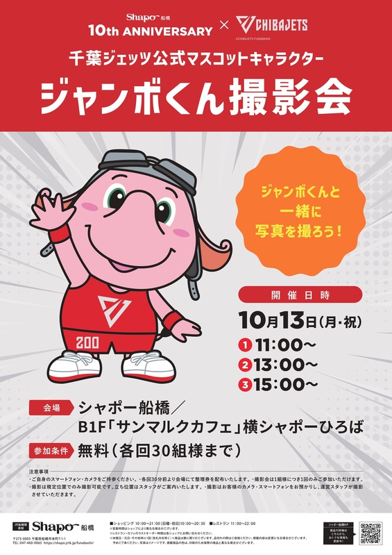 シャポー船橋でジャンボくんと写真を撮りましょう!