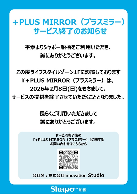 『+PLUS MIRROR(プラスミラー)は、2026年2月8日(日)をもちまして、