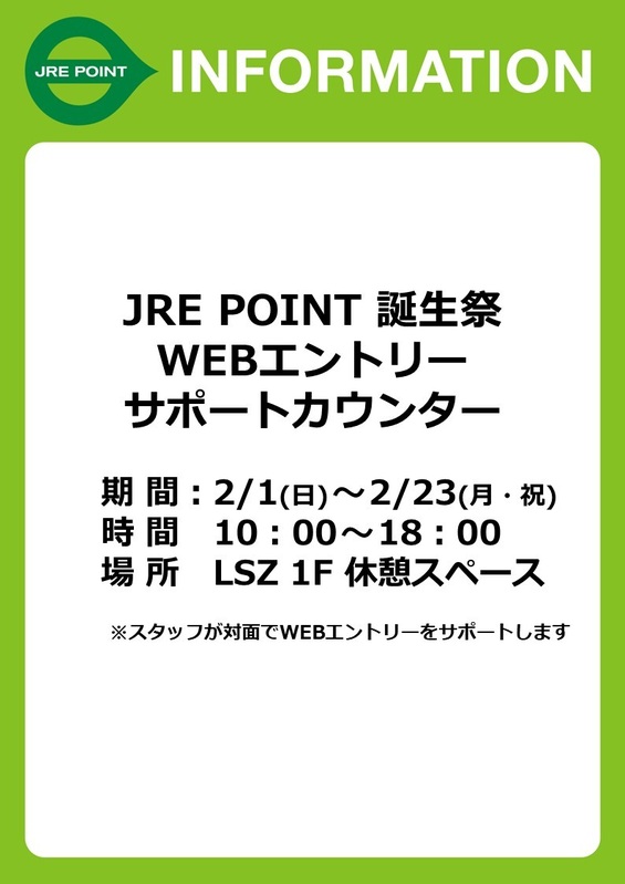 JRE POINT誕生祭の開催に伴い、キャンペーンの参加に必要なWEBエントリーをサポートするカウンターが期間限定で営業いたします!
