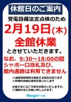 受電設備法定点検のため2026年2月19日(木)は全館休館とさせていただきます。