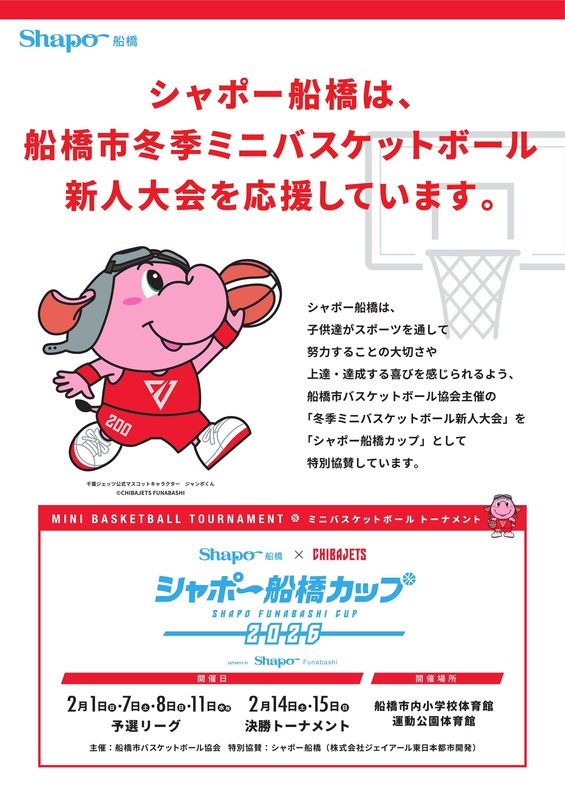 シャポー船橋は、船橋市冬季ミニバスケットボール新人大会を応援しています♪