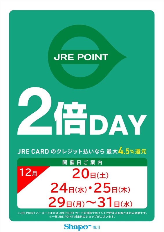 是非JRE POINT2倍DAYでお得にお買い物をお楽しみください✨