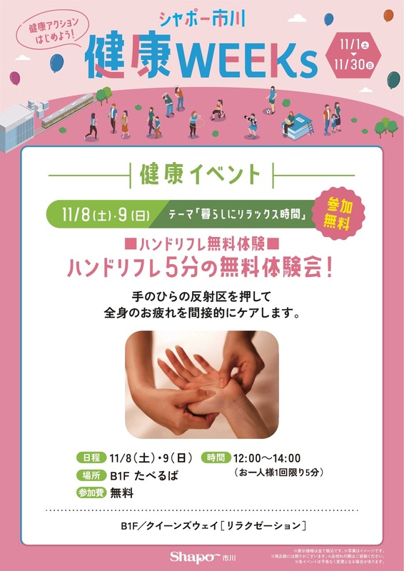 【健康WEEKsイベント】クイーンズウェイのハンドリフレ無料体験!