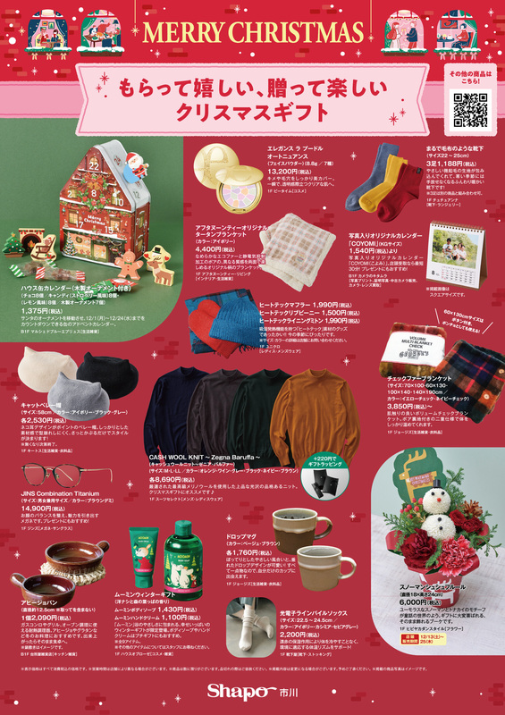 シャポー市川では、クリスマスギフト・ファッションの特集を開催しております!👀✨