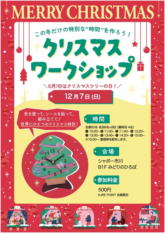 それに合わせてシャポー市川では「クリスマスツリー時計づくりワークショップ」を開催いたします!