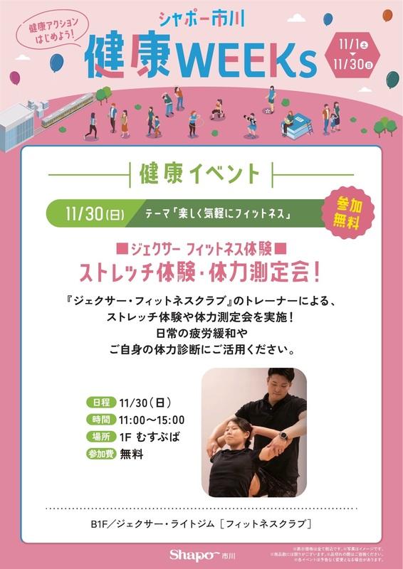 【健康WEEKsイベント】ジェクサー・ライトジムのストレッチ体験・握力測定会!