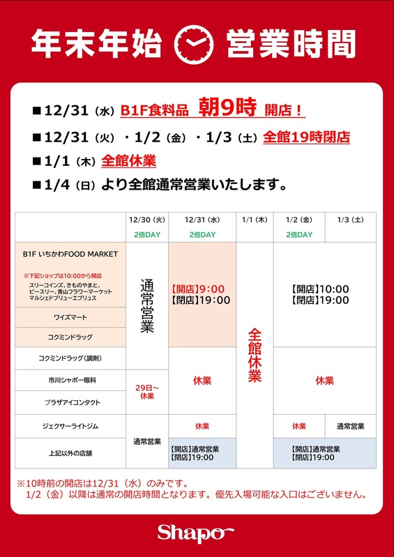トピックス 年末年始の営業時間について 年末年始は営業時間が異なります。ご来店の際にはご注意いただきますようお願いいたします。皆さまのお越しをお待ちしております。 tweetする Facebookでシェアする LINEで送る