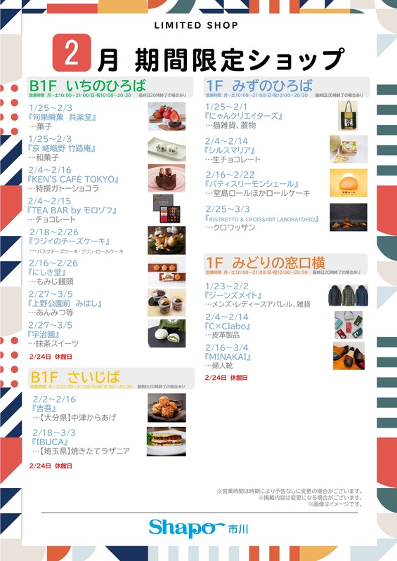 2月の期間限定ショップ♪|トピックス|シャポー市川 | JR総武線市川駅直結のショッピングセンター