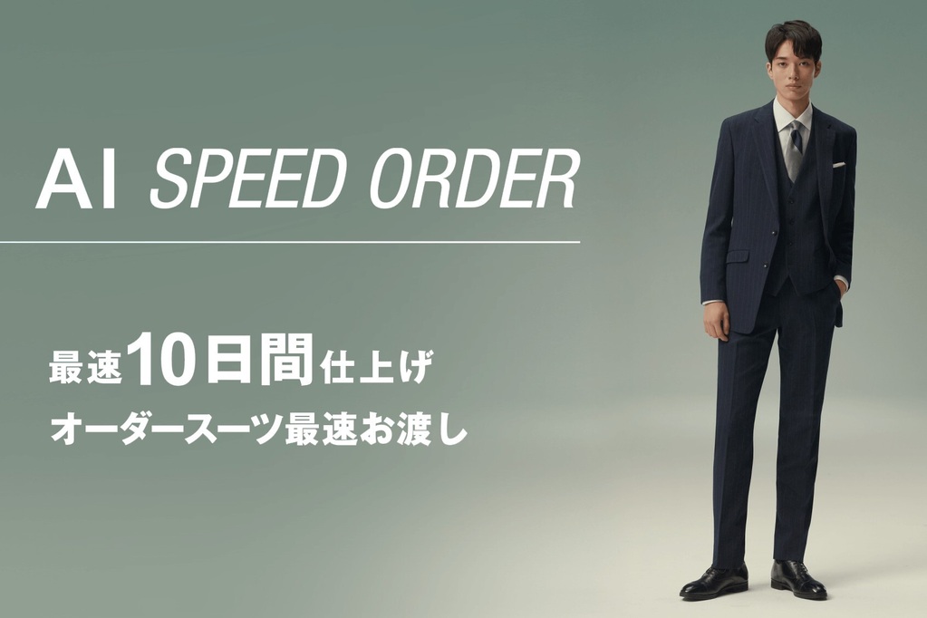 SUIT SELECTの「AI SPEED ORDER」は、最短10日で仕上がるオーダースーツ。