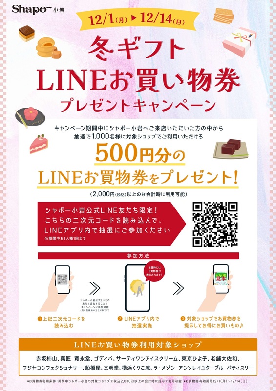対象ショップでご利用いただける500円分のLINEお買物券をプレゼント!