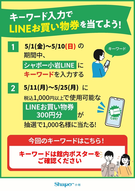 キーワード入力でLINEお買い物券を当てよう!|トピックス|シャポー小岩 | JR総武線小岩駅直結のショッピングセンター