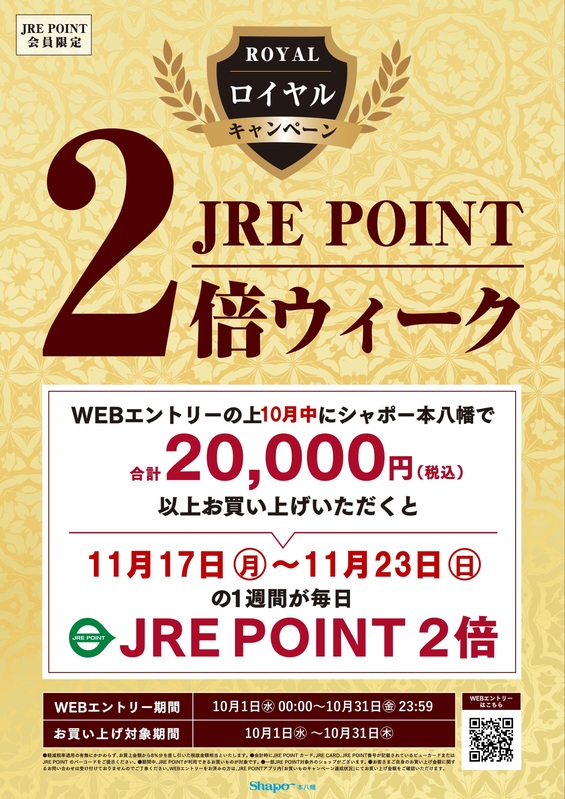 〈JRE POINT 2倍期間〉:11月17日(月)~11月23日(日)
