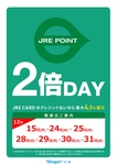 トピックス 12月のJRE POINT 2倍デー!! 12月は15日(月)、24日(水)、25日(木)、28日(日)~31日(水)に2倍デーを開催!!その他ショップ限定2倍デーも開催いたします♪皆様のご来店をお待ちしております。 tweetする Facebookでシェアする LINEで送る