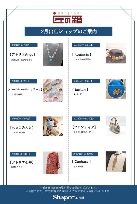 ○2月匠の箱出店情報○|トピックス|シャポー本八幡 | JR総武線本八幡駅直結のショッピングセンター