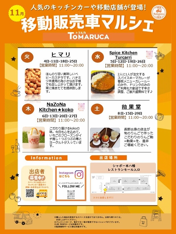 ○11月キッチンカー出店情報○|トピックス|シャポー本八幡 | JR総武線本八幡駅直結のショッピングセンター
