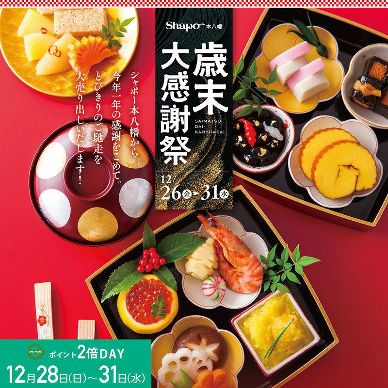 トピックス 予告【12月26日~31日】歳末大感謝祭 【12/26(金)~12/31(水)】歳末大感謝祭を開催!期間中28(日)~31(水)はJRE POINT 2倍デーも開催します♪今年最後の大売り出しをお見逃しなく! tweetする Facebookでシェアする LINEで送る